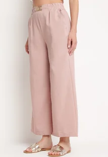 Jasnoróżowe Szerokie Spodnie Palazzo z Wysokim Stanem i Gumką w Pasie Biofina