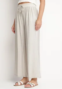 Jasnoszare Szerokie Spodnie Palazzo z Wysokim Stanem i Wiązaniem Myrlevia