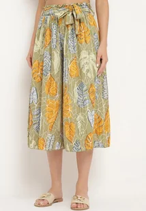 Jasnozielone Szerokie Spodnie z Wysokim Stanem i Bawełną oraz Gumką w Talii Opefia