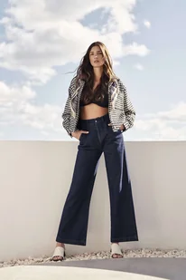 100% BAWEŁNA Jeansy damskie w ciemnogranatowym kolorze. Gładkie bez wzorów. Na całości jednolity kolor bez przetarć. Zapinane na zamek błyskawiczny oraz guzi...