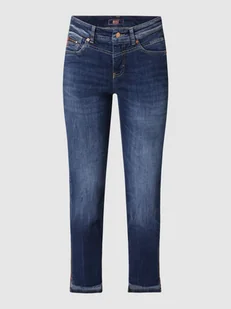 Jeansy damskie MAC;Mieszanka bawełny z dodatkiem tkaniny z recyklingu;Dodatek lyocellu i streczu;Krój straight fit;Zapięcie na guzik i zamek błyskawiczny;5 kieszeni;Zakończenia nogawek zapinane na zamek błyskawiczny;Naszywka z logo;Długość wewnętrzna nogawki w rozmiarze 36/28: 73 cm;Szerokość w pasie w rozmiarze 36/28: 74 cm