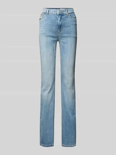 Jeansy damskie Noisy May;Mieszanka bawełny i elastanu;Rozkloszowany krój;Model ‘WENDIE’;5 kieszeni;Zapięcie na guzik i zamek błyskawiczny;Detal z logo;Szerokość w pasie w rozmiarze 27/32: 40 cm;Długość wewnętrzna nogawki w rozmiarze 27/32: 85 cm