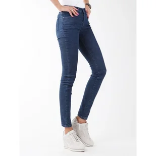 Jeansy Wrangler Blue Star W W27HKY93C Właściwości: damskie jeansy ze zwężanymi nogawkami kieszonki z przodu i z tyłu na pasku z tyłu czarna skórzana wstawka z logo firmy Wrangler spodnie są obcisłe, rozciągliwe i wyszczuplające sylwetkę materiał: 95% bawełna/ 5% elastomultiester/ 2% elastan Materiał: bawełna Kolor: niebieski