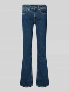 Jeansy damskie Pepe Jeans;Model ‘Piper’;Efekt: jednolity kolor;Krój: Poszerzana nogawka;Stan: Średni stan;Aplikacja: Napis z logo, naszywka z logo, wyhaftowane logo, detal z logo;Detale: