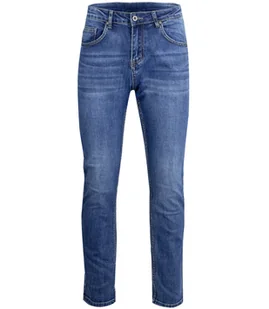 męskie jeansy klasyczny fason 5 kieszeni niebieski kolor prosta nogawka Klasyczne jeansy męskie w kolorze niebieskim Zapinane na guzik i suwak Stan standardo...