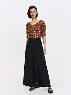 Spodnie damskie Top Secret z bardzo szerokimi nogawkami. Urzekające swym nietuzinkowym wyglądem oraz niecodzienną elegancją, długie spodnie damskie z bardzo szerokimi nogawkami oraz delikatną oraz ozdobną fakturą na całości. Posiadają one praktyczne kieszenie umiejscowione po bokach oraz szeroką gumkę w talii, która podkreśla smukłość kobiecej sylwetki. Będą one doskonałym wyborem zarówno jako uzupełnienie eleganckiej stylizacji wyjściowej podczas wieczornej wizyty w teatrze, jak i również w trakcie uroczystej kolacji w gronie przyjaciół. Spodnie damskie dostępne w kolorze czarnym TSKS25SPO453699X00.