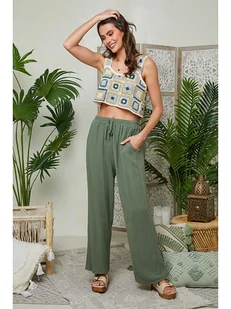 Le Monde du Lin Lniane spodnie w kolorze khaki
