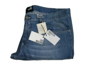 marka: Love Moschino opis: spodnie kolor: niebieski rozmiar: 40 wymiary: szerokość 54 cm, długość 119,5 cm, nogawka w udzie 36 cm, na dole 21,5 cm skład: 100...