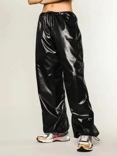 Luźne spodnie damskie z ekoskóry - Czarny L