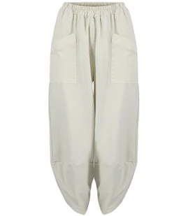 spodnie damskie bawełna na gumkę duże, ozdobne kieszenie szerokie nogawki obniżony krok balloon fit Fantazyjne damskie spodnie balloon fit Model z gumką w pa...