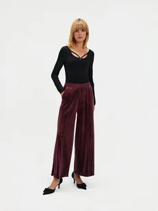 Stylowe i komfortowe luźne welwetowe spodnie to idealny wybór dla osób ceniących sobie elegancję i wygodę. Wykonane z wysokiej jakości materiału, zawierające w swoim składzie elastan.Te spodnie zachwycają miękkością i delikatnym połyskiem. Intensywny czerwony kolor dodaje im charakteru i sprawia, że doskonale sprawdzą się zarówno na co dzień, jak i na specjalne okazje. Szerokie nogawki i luźny krój zapewniają maksymalny komfort noszenia, dzięki czemu można się w nich czuć swobodnie przez cały dzień.
