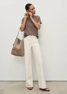 Tkanina bawełniana w stylu jeansowym, Tkanina elastyczna, Fason culotte, Wysoki stan, Szlufki, Tylne kieszenie, Zapięcie na zamek błyskawiczny i guzik, Postrzępione nogawki, Długość wewnętrzna 72 cm, Dostępne Plus, Modelka ma 179 cm wzrostu i nosi rozmiar S/36