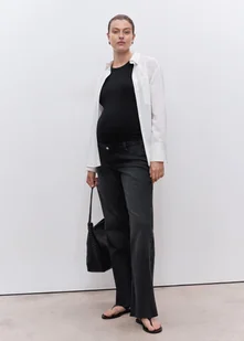Tkanina bawełniana w stylu jeansowym, Długi fason, Prosty krój, Niski stan, Talia z gumką, Elastyczny pas z dzianiny w talii dla lepszego podtrzymania i komfortu, Szlufki, Pięć kieszeni, Ozdobny guzik, Postrzępione nogawki, Bez zapięcia, Odzież ciążowa, Zapewnia wygodę i swobodę ruchu, Polecamy kupić zwyczajowy rozmiar, Wyłącznie Online