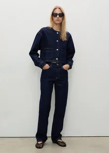 Tkanina mieszana z bawełną z recyklingu, Tkanina bawełniana w stylu jeansowym, Rinse wash, Prosty krój, Długi krój, Model standardowy, Średni stan, Pięć kieszeni, Zapięcie na zamek i guzik z przodu, Szlufki, Dwie kieszenie boczne, Dwie kieszenie z tyłu, Zapięcie na zamek błyskawiczny i guzik, Długość wewnętrzna 78 cm, Pełna długość, Dostępne Plus, Modelka ma 178 cm wzrostu i nosi rozmiar S/36