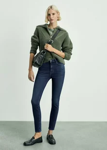 Tkanina bawełniana w stylu jeansowym, Krój skinny, Slim fit, Wysoki stan, Pięć kieszeni, Szlufki, Zapięcie na zamek i guzik z przodu, Dostępne Plus, Dopasowany fason, Długi fason, Zapięcie na zamek i guzik z przodu, Długość wewnętrzna 68 cm