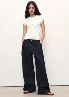 50% REGENEROWANA BAWEŁNA MATERRA, Tkanina bawełniana w stylu jeansowym, Długi fason, Krój wideleg, Średni stan, Szlufki, Szczegóły przednich zakładek, Cztery kieszenie, Zapięcie na guzik i zamek błyskawiczny, Długość wewnętrzna 81 cm