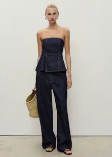 MANGO - Dżinsy z prostymi nogawkami i paskiem niebieski - 34 - Kobieta