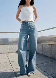 MANGO - Dżinsy ze średnim stanem i prostymi nogawkami średni niebieski - 46 - Kobieta