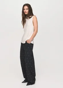MANGO - Jeansy barrel z oczkami black denim - 36 - Kobieta
