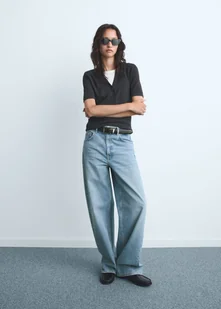 MANGO - Jeansy barrel ze średnim stanem średni niebieski - 46 - Kobieta