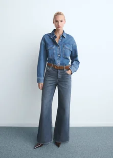 MANGO - Jeansy wide leg z wysokim stanem ciemnoniebieski - 34 - Kobieta
