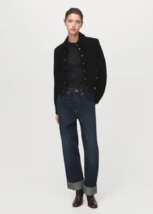 MANGO - Jeansy wide leg z wywiniętym dołem niebieski - 40 - Kobieta