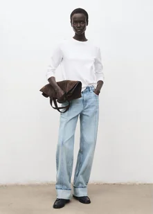 MANGO - Jeansy wide leg z wywiniętym dołem średni niebieski - 46 - Kobieta