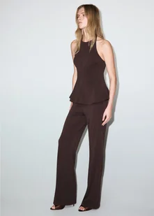MANGO - Proste spodnie z elastycznym pasem brązowy - XS - Kobieta