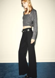 MANGO - Spodnie flare z paskiem czarny - 38 - Kobieta