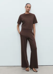 MANGO - Spodnie o prostym kroju z bawełny brązowy - S - Kobieta