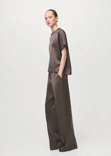 MANGO - Spodnie satynowe o prostym kroju średni brązowy - 38 - Kobieta