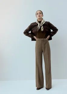 MANGO - Spodnie z mieszanki wełny w wzór pied de poule średni brązowy - 46 - Kobieta