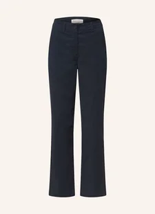 Wysoki stan. Proste nogawki. Zapięcie na guzik i zamek błyskawiczny. Boczne kieszenie wpuszczane. Kieszeń z wypustką z tyłu. Materiał gładki w dotyku. Wykonane z bawełny