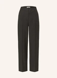 Wysoki stan. Proste nogawki. Zapięcie na guzik, haftkę i zamek błyskawiczny. Kanty. Boczne kieszenie wpuszczane. Kieszeń z wypustką z tyłu. Prążki tenisowe. Miękki w dotyku materiał