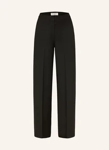 Wysoki stan. Proste nogawki. Zapięcie na guzik, haftkę i zamek błyskawiczny. Kanty. Boczne kieszenie wpuszczane. Kieszeń z wypustką. Splot skośny. Solidny w dotyku materiał