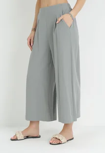 Miętowe Bawełniane Spodnie Kuloty o Długości 7/8 Anaim
