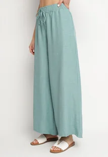 Miętowe Spodnie o Szerokim Kroju z Wysokim Stanem i Wiązaniem Telarieta