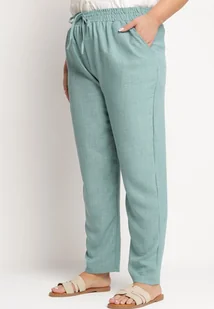 Miętowe Spodnie z Wiązaniem w Pasie i Kieszeniami Truvolia