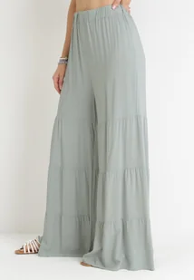 Miętowe Szerokie Spodnie z Gumką w Pasie Bemataria