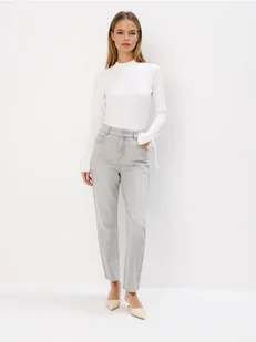 Jeansy o kroju mom slim z efektem push up. Posiadają zapięcie na zamek i guzik.