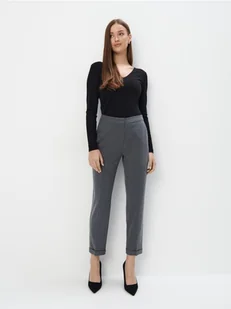 Spodnie cygaretki w kolorze szarym. Posiadają zapięcie na zamek i haftkę.