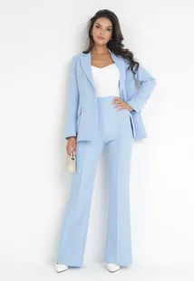 Niebieskie Garniturowe Spodnie z Szerokimi Nogawkami i Gumką w Pasie Leilma