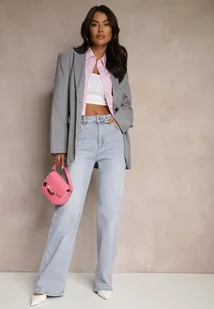 Niebieskie Jeansy z Wiskozą i Bawełną High Waist o Szerokim Kroju Helviola