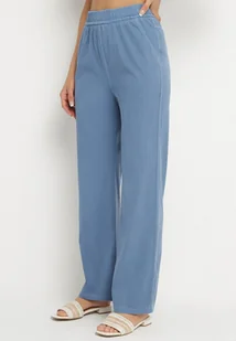 Niebieskie Spodnie Dresowe z Wiskozą o Szerokim Kroju z Wysokim Stanem Lintenera