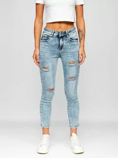 Spodnie damskie w kolorze niebieskim Spodnie typu Regular Push Up Pas z guzikiem i zamkiem Trzy kieszenie z przodu i dwie z tyłu Posiadają modne przetarcia i cieniowania na nogawkach Styl codzienny Idealne na co dzień Materiał: 80% Bawełna, 18% Poliester, 2% Elastan