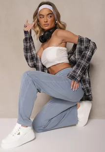 Niebieskie Spodnie z Bawełną Wiskozą i Ozdobnym Wiązaniem Orrivaria