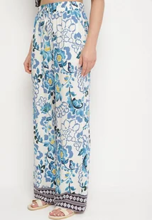 Niebieskie Wiskozowe Spodnie o Prostym Kroju ze Ściągaczem w Talii Lielle