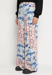 Niebiesko-Beżowe Spodnie Szerokie w Abstrakcyjny Wzór z Wiskozy Averina