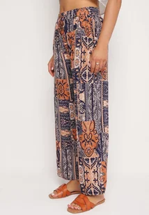 Niebiesko-Pomarańczowe Spodnie Palazzo z Wiskozy z Gumką w Talii Lirfea