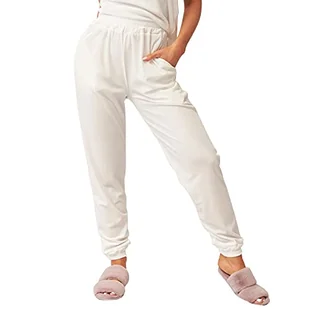 OHS Damskie spodnie dresowe z aksamitu welurowego, Kremowy naturalny, L/XL